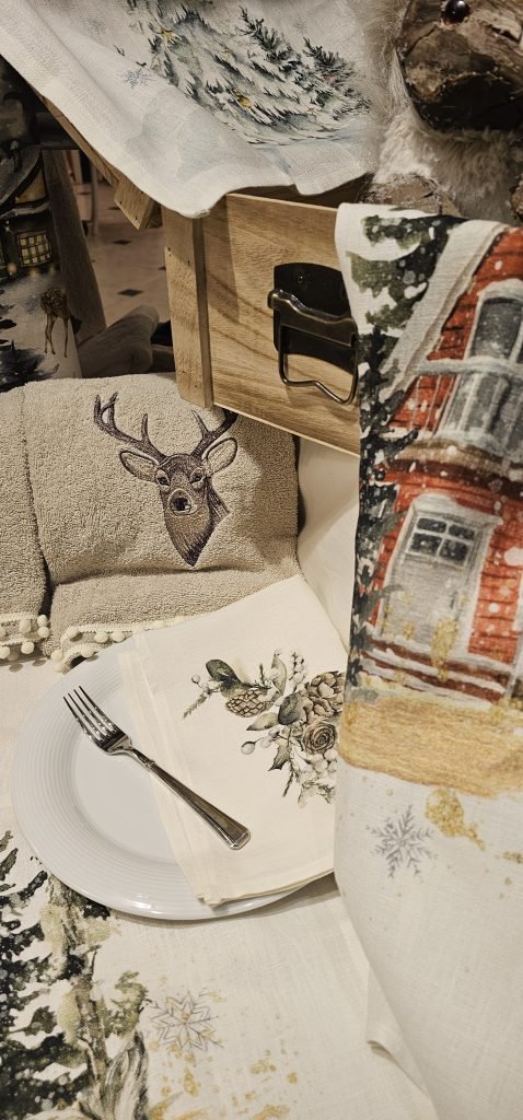 Per la biancheria da cucina natalizia, ci sono splendide opzioni con motivi festivi che vanno dai runner con stampe di agrifoglio e fiocchi di neve alle tovagliette e tovaglioli decorati con renne, stelle e abeti. Gli strofinacci a tema Natale, spesso con ricami o disegni di pupazzi di neve e decorazioni natalizie, aggiungono un tocco di calore alla cucina. Tessuti in cotone o lino di alta qualità sono ideali per resistere all’uso quotidiano, mantenendo allo stesso tempo l’atmosfera delle feste.