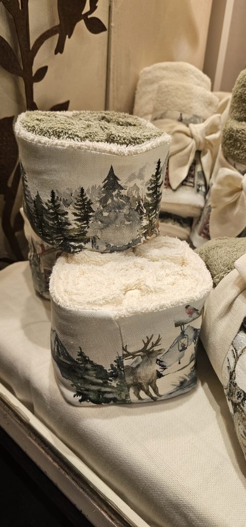 Per creare un’atmosfera magica nel bagno, i set di asciugamani e i porta lavette sono perfetti per aggiungere eleganza e calore. Scegli set di asciugamani in morbida spugna o cotone, con ricami o dettagli raffinati in colori che richiamano il tema della stanza, come tonalità naturali o motivi che ricordano le festività. Un porta lavette coordinato, magari in legno o ceramica, può completare l’arredo e organizzare al meglio le lavette, offrendo agli ospiti un tocco di accoglienza e stile.
