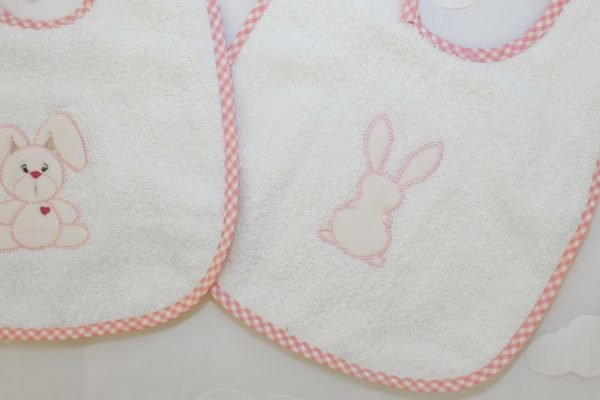 Bavaglino ricamato coniglietto rosa 2