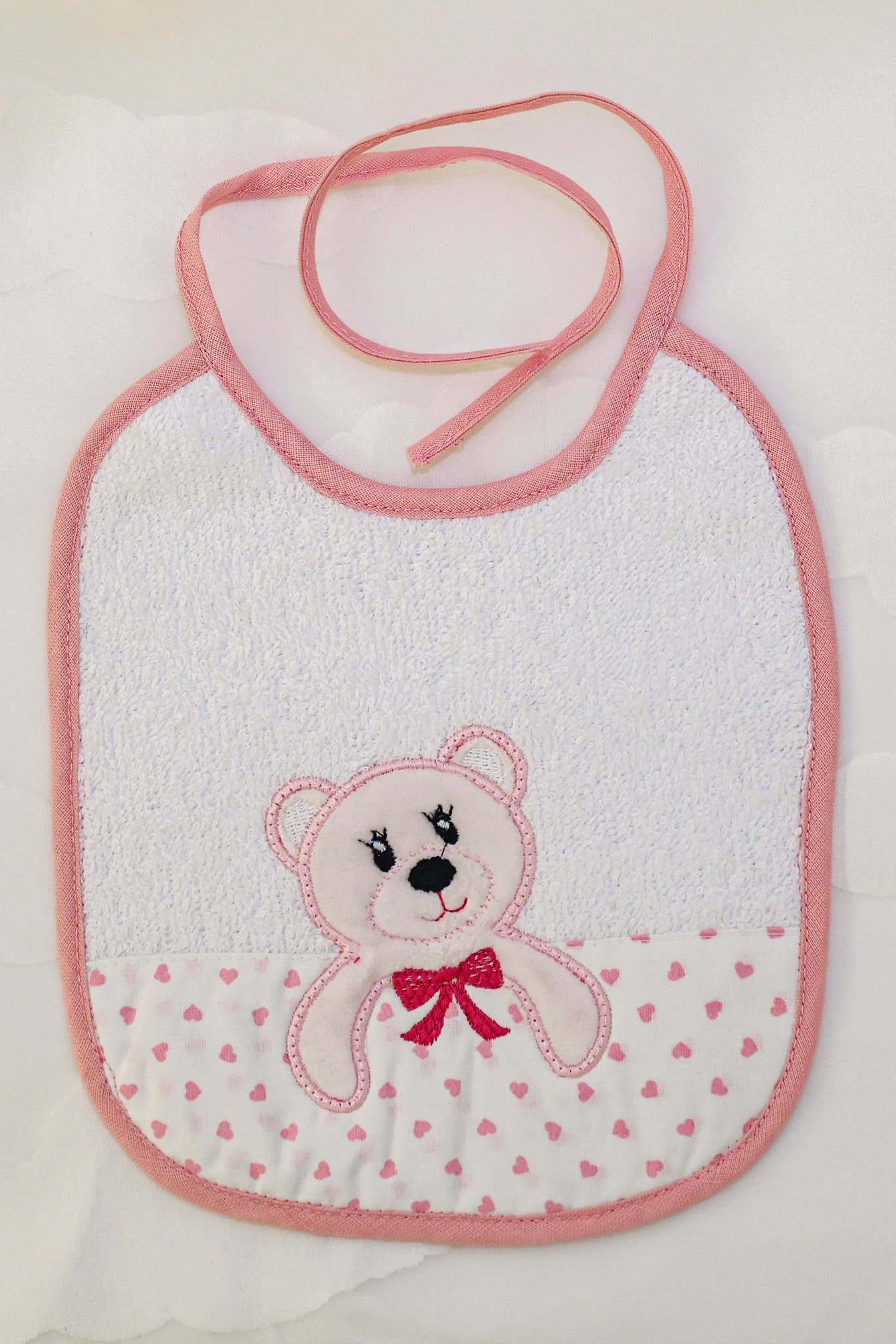 Bavaglino ricamato Orsetto rosa