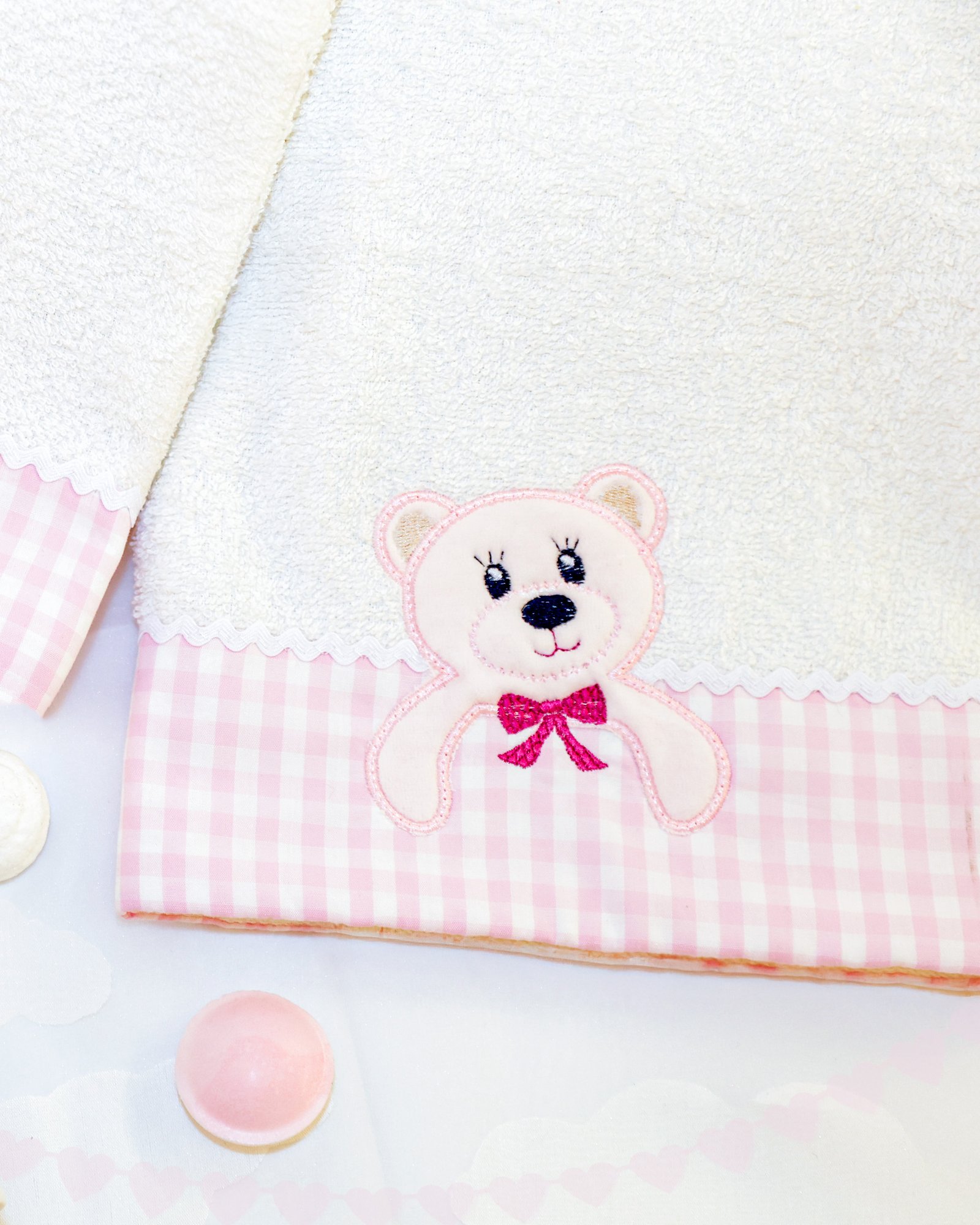 Scopri i nostri adorabili asciugamani per bambini, ricamati a macchina con cura e precisione. Realizzati con materiali morbidi e ipoallergenici, sono perfetti per asciugare delicatamente la pelle dei più piccoli dopo il bagnetto.
