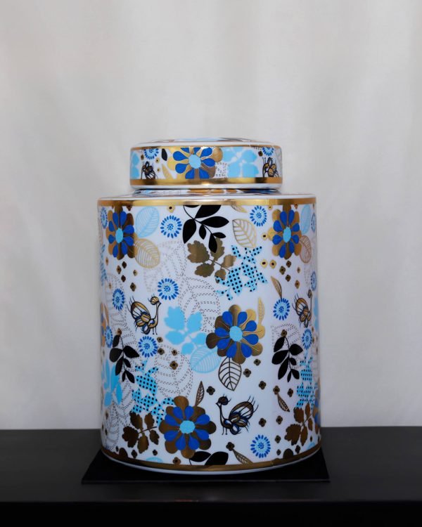 Un vaso in ceramica decorato con motivi floreali nei toni del blu, azzurro e oro è un oggetto di grande eleganza e raffinatezza. L’uso del blu e dell’azzurro richiama sensazioni di calma e serenità, mentre i dettagli dorati aggiungono un tocco di lusso e sofisticazione. Un oggetto del genere può diventare il punto focale di una stanza, perfetto per valorizzare ambienti classici o contemporanei.